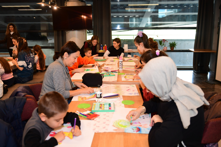 Etkinlik hakkında bilgiler veren Anne Çocuk Sanat Atölyesi Eğitmeni Simge Işıktaş Demir, “Bu atölyemizde anneler ve çocukların dünyayı birbirlerinin gözünden nasıl algıladıklarını sanat yoluyla keşfetmelerini amaçlıyoruz. Serbest resim çalışmasıyla ortak bir üretim süreci oluşturuyoruz. Aynı resim, farklı bakış açılarıyla bambaşka anlamlar kazanabiliyor. Çocuğun bir bulut olarak çizdiği figür, annede bir hayvana; çocuğun bir üçgen olarak resmettiği şekil, annede bir dondurmaya dönüşebiliyor. Aslında dünyayı birbirinin gözlerinden nasıl keşfettiklerini görmek için bu çalışmayı yapıyoruz. Amacımız, anne ve çocukları ortak bir paydada buluşturarak birlikte anlamlı bir sanat eseri ortaya çıkarmak.” diye konuştu.