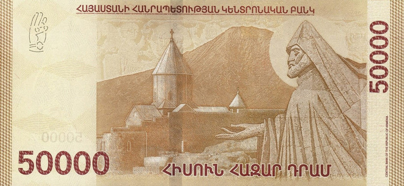 Ermenistan Hükümeti’nin adeta devrim niteliğindeki bir sonraki adımı ise, güncellenmiş tasarıma sahip 50 bin dramlık banknotları piyasaya sürecek olması. Ermenistan Merkez Bankası, yeni banknotlardan iki geleneksel ve tarihi sembolün kaldırılacağını doğruladı. Bu semboller Ağrı Dağı ve Ermeni Katolik Kilisesi’nin kurucusu Aziz “Aydınlatıcı Gregorius”un resmi. Tasarlanan yeni banknotta eski sembollerin yerine Ermenistan Cumhuriyeti hükümet binası görselinin yer alması bekleniyor. Ülkede banknot tasarımları son olarak 2018 yılında, ulusal paranın tedavüle çıkışının 25. yıl dönümü dolayısıyla değiştirilmişti. Yeni görsellere sahip ilk banknotların ise 2026 yılı ilkbaharında piyasaya sürüleceği ve bu tarihten itibaren de eski banknotların kademeli olarak tedavülden kaldırılacağı bildirildi.