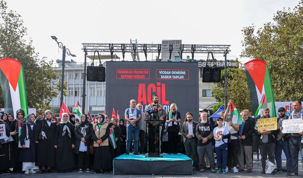 İHH Genel Sekreteri Ahmet Göksun da, “Bu gemiler bize bir şeyi haykırıyor. Gazze ulaşılamaz bir yer değil. Daha önce ulaşan gemiler de oldu. Başka bir gezegende bir yerden bahsetmiyoruz. Dünyada, hemen yanı başımızda zulüm yaşanıyor. Yarın mahşerde hesap verebilmek için elimizden ne geliyorsa onu yapmamız gerekiyor. Bütün ülkelerden insanlar ayağa kalkmış durumda. Meydanları boş bırakmıyoruz. Bütün devletlere sesleniyoruz, biz sivillerin daha ne yapması lazım. Harekete geçmek için toplumlarınızdan ne bekliyorsunuz.